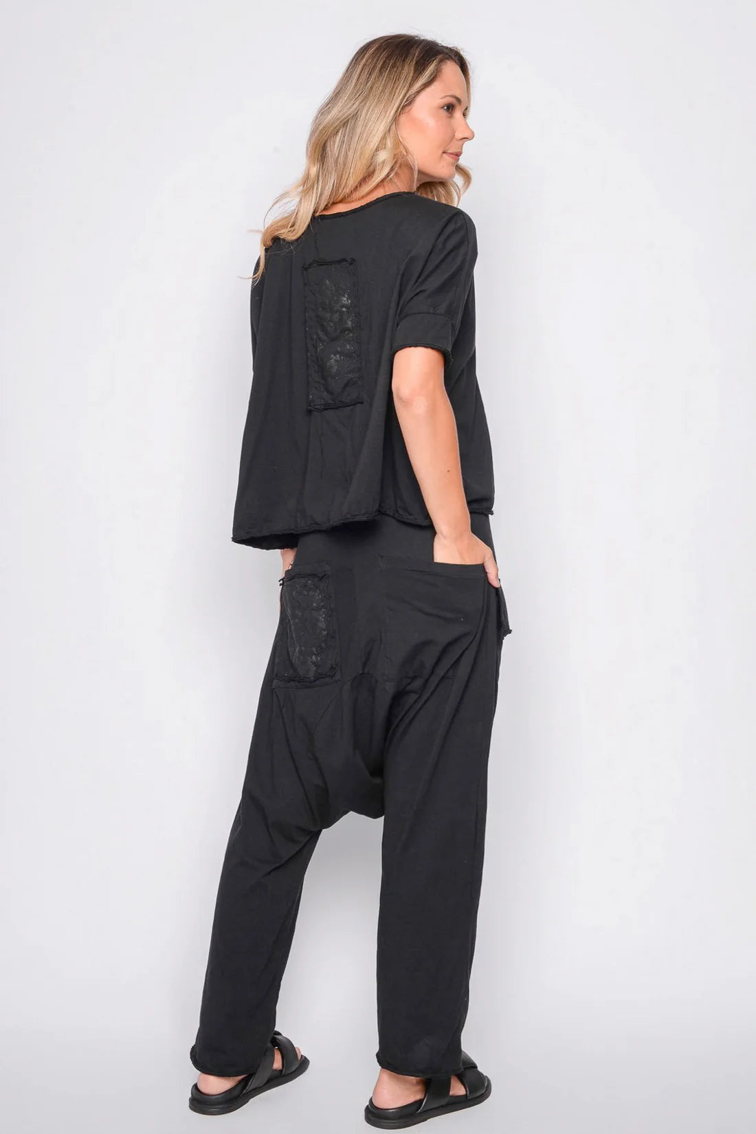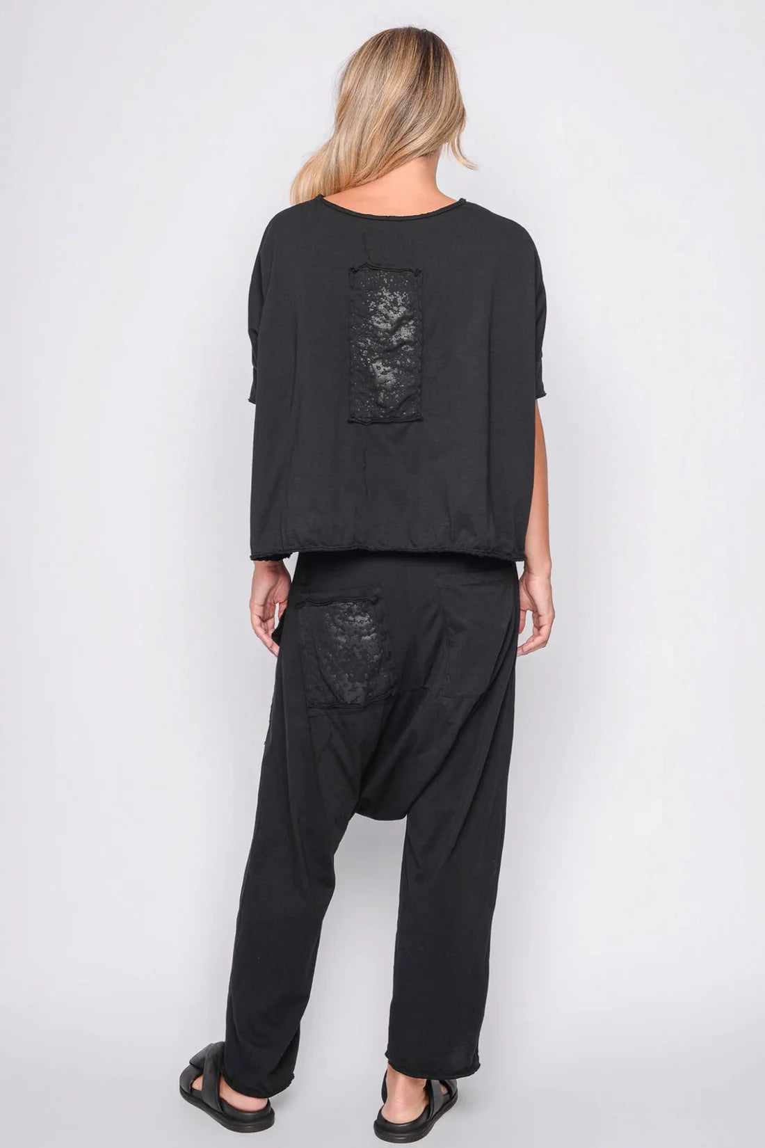 Patch hinten mit schwarzem Print .... gewollt offene Kanten im used Look ....