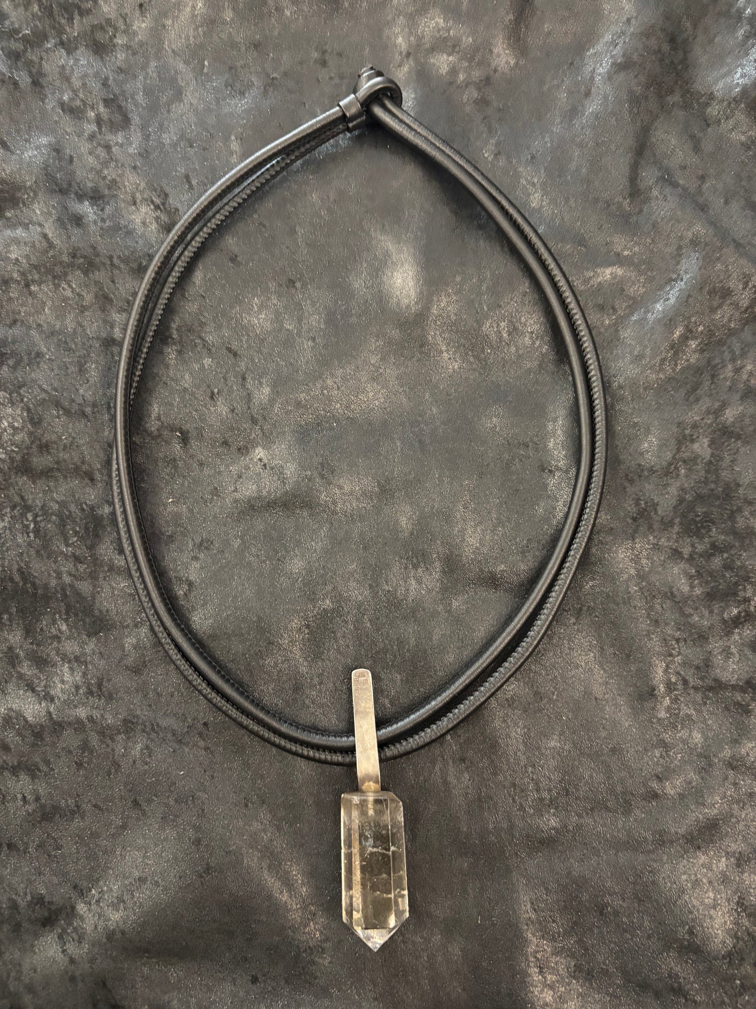 doppelte Lederkette ihr könnt sie super in der Länge variieren…. Anhänger aus geschwärztem 925 Silber mit einem Bergristall