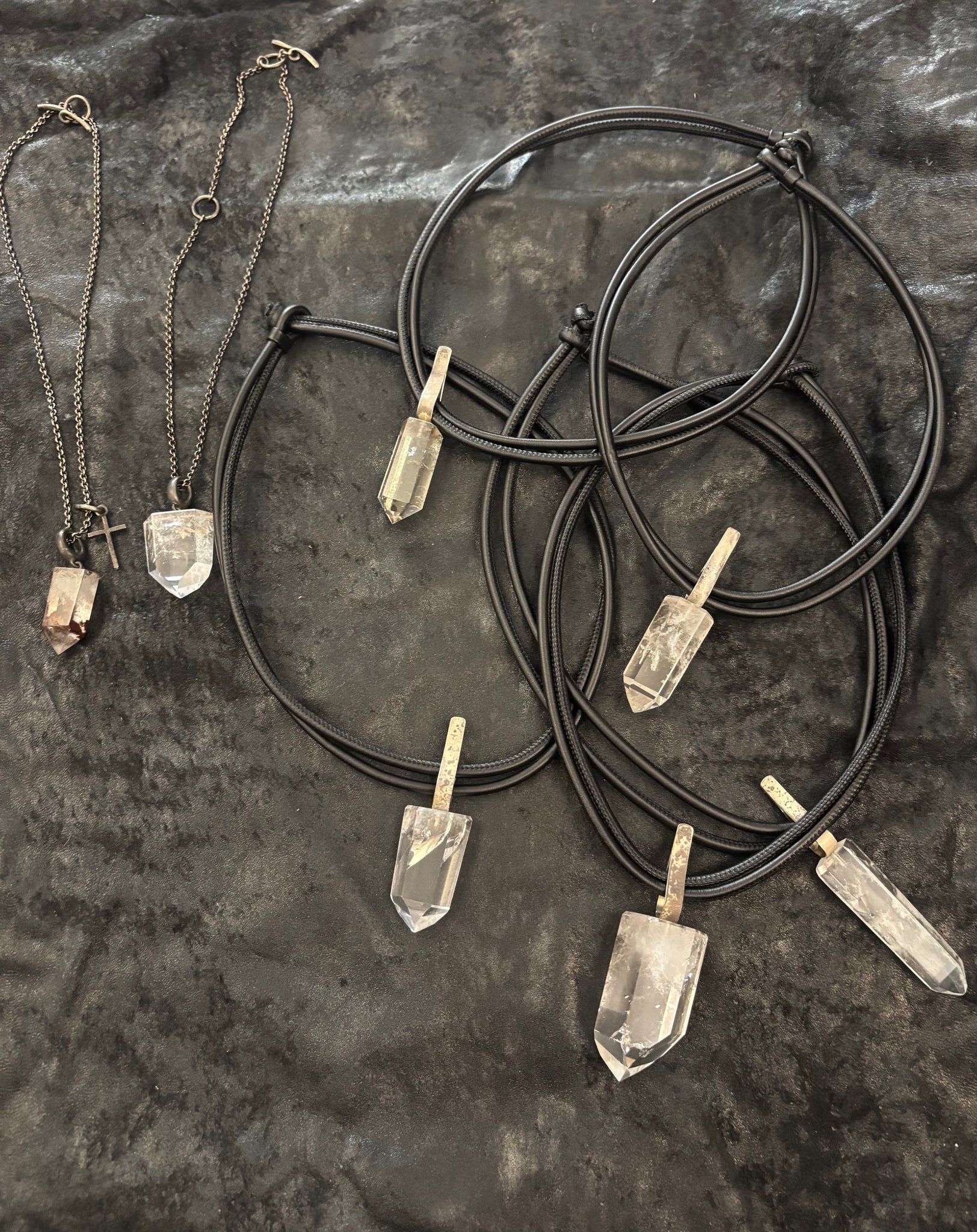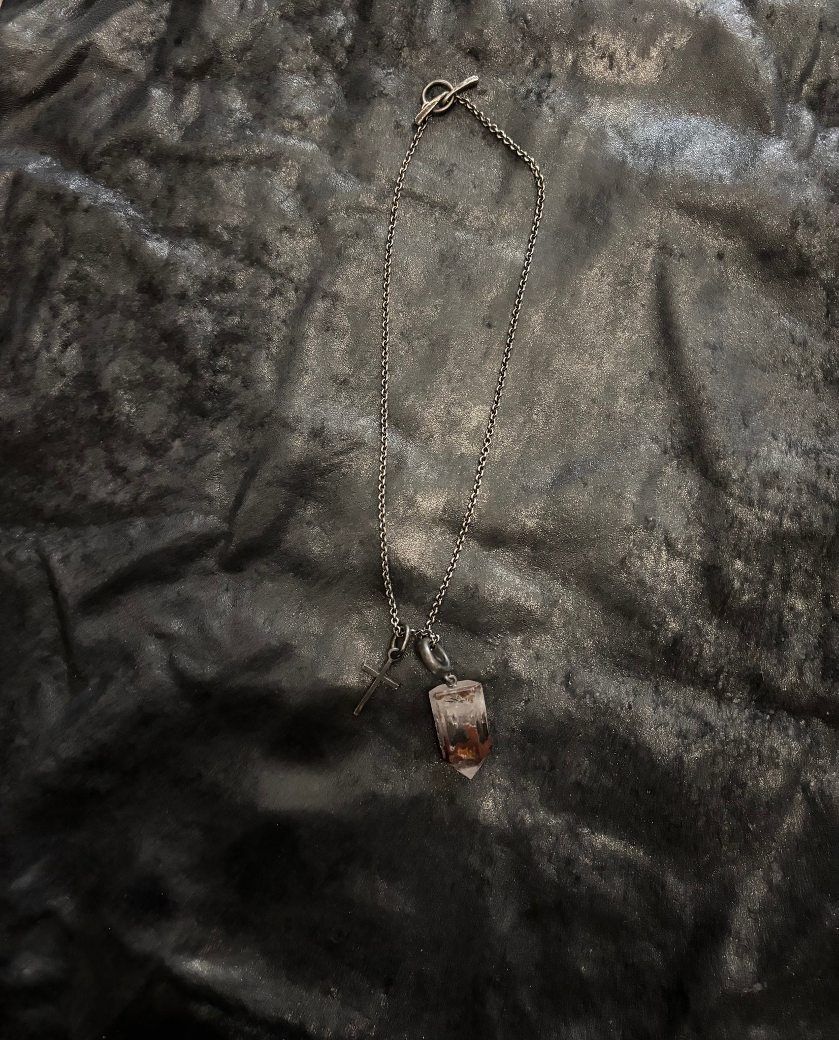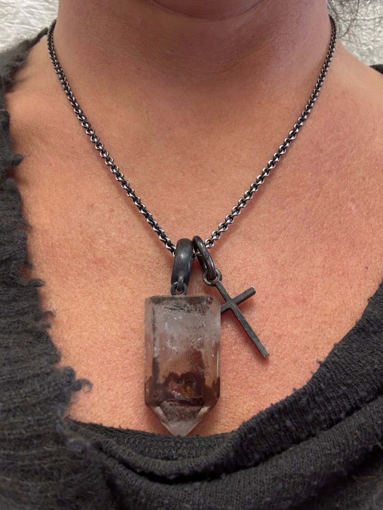 kleines Kreuz aus massivem Silber geschwärzt …. Bergkristall Anhänger mit wunderschönen Einschlüssen und Fassung aus geschwärztem Silber