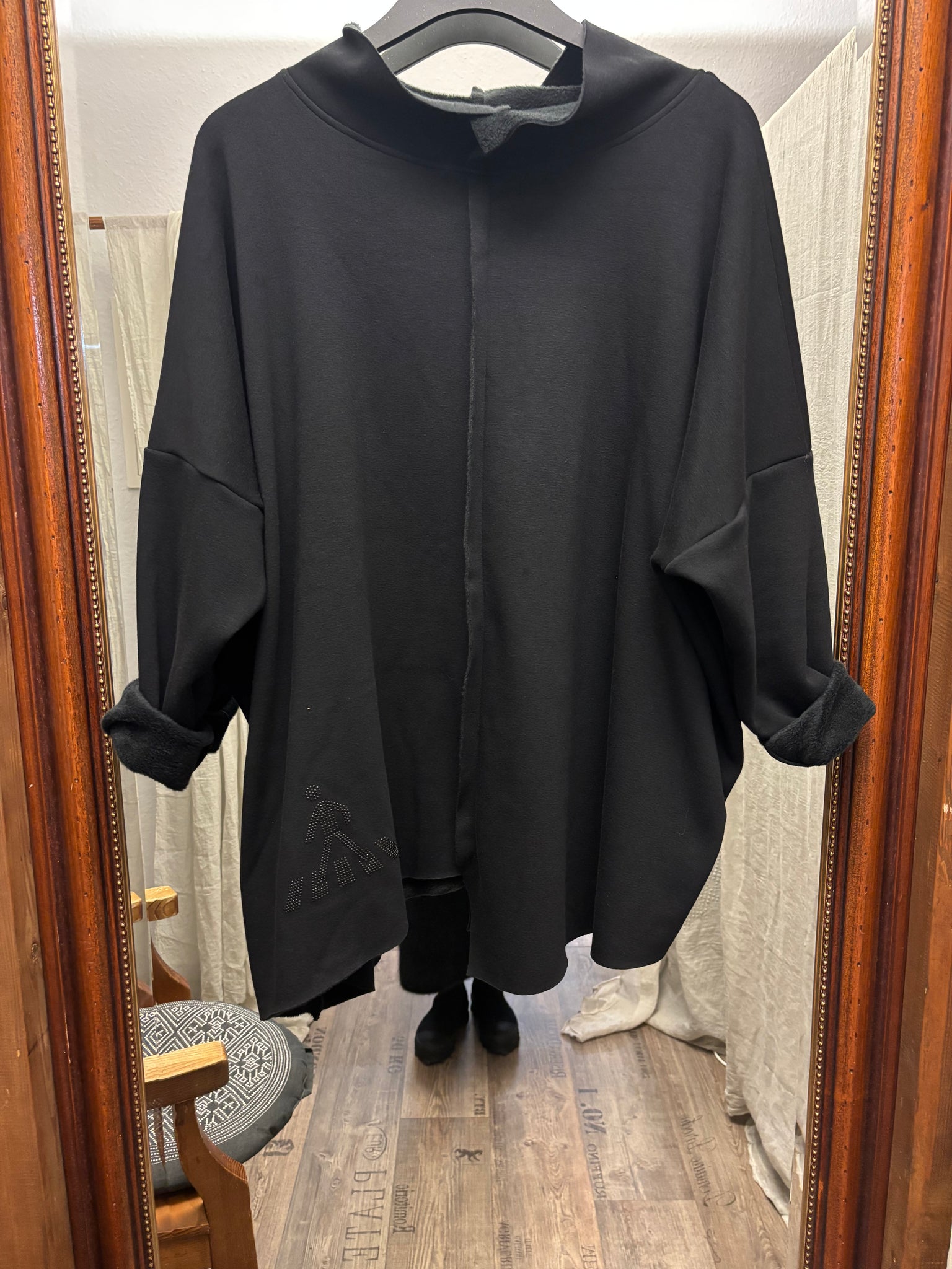 ihr könnt den Pulli von beiden Seiten Tragen ….. Oversize ….. fällt gemütlich aus