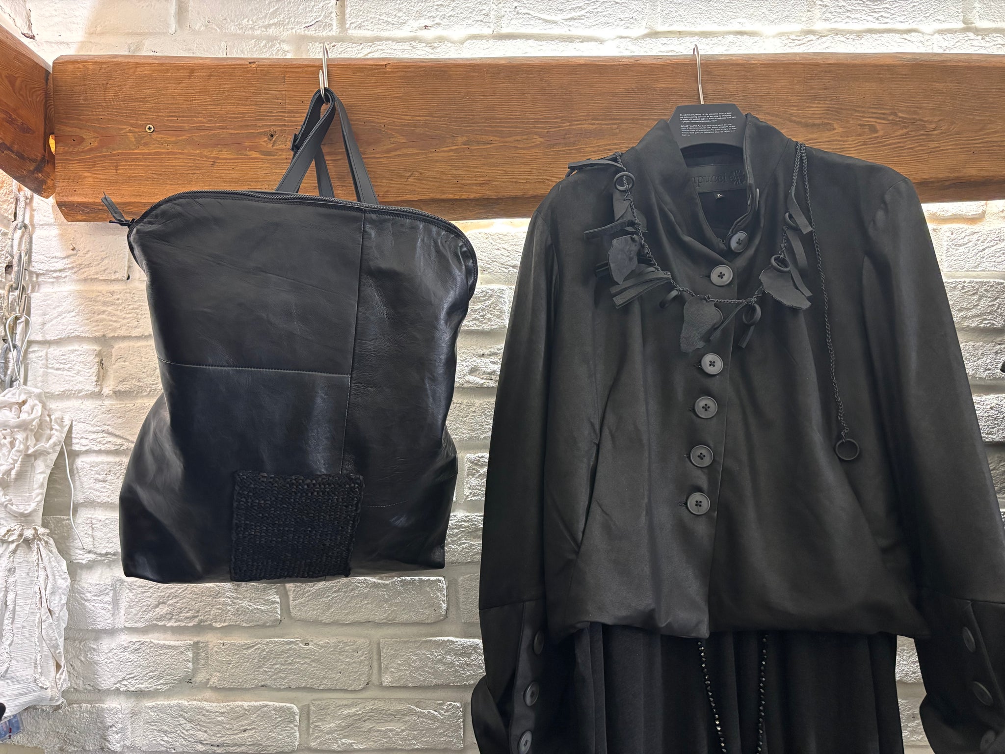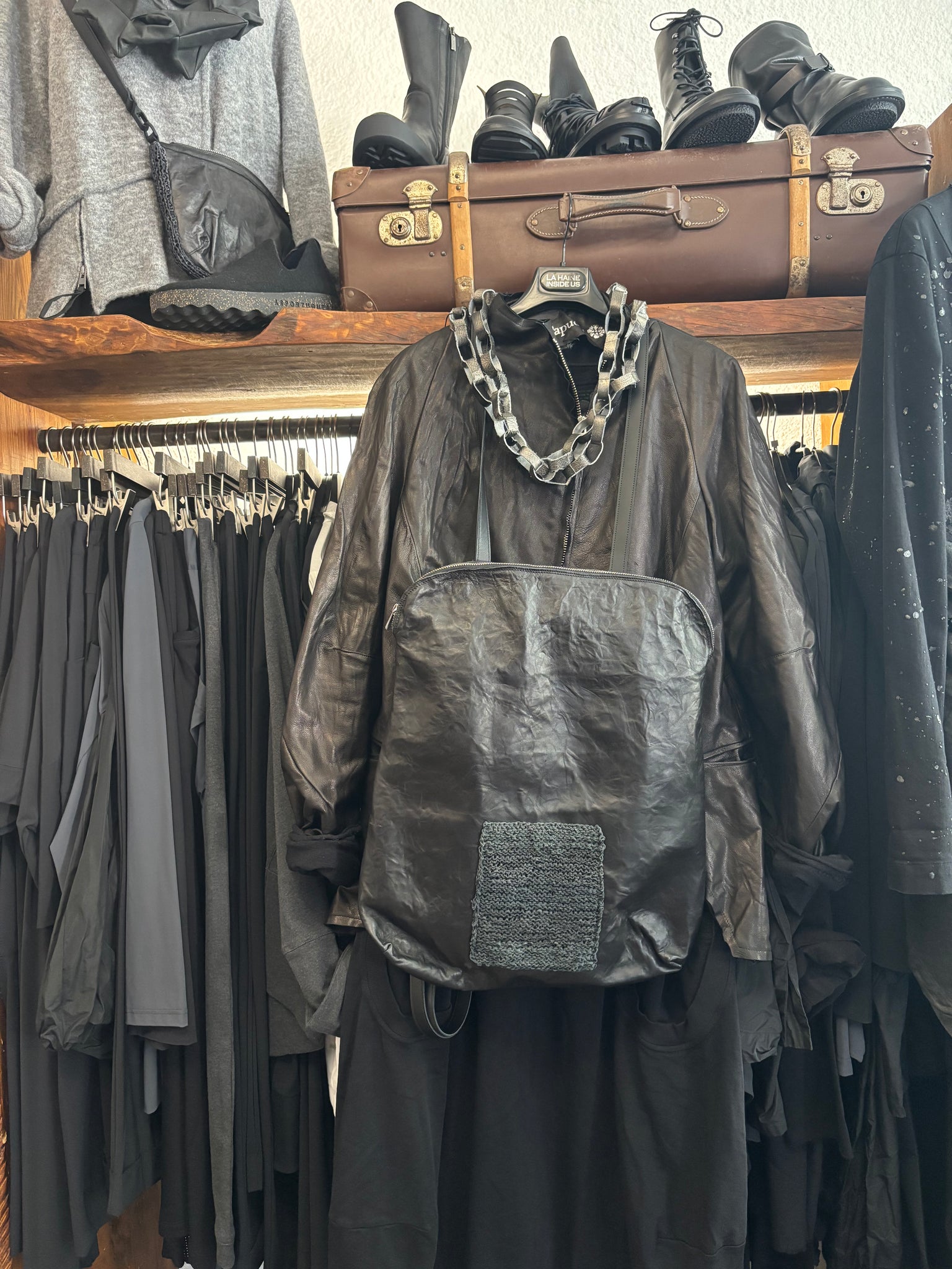 schönes gewaschenes Leder mit Besatz aus gestricktem Leder ….. ihr könnt es als Rucksack oder Tasche tragen