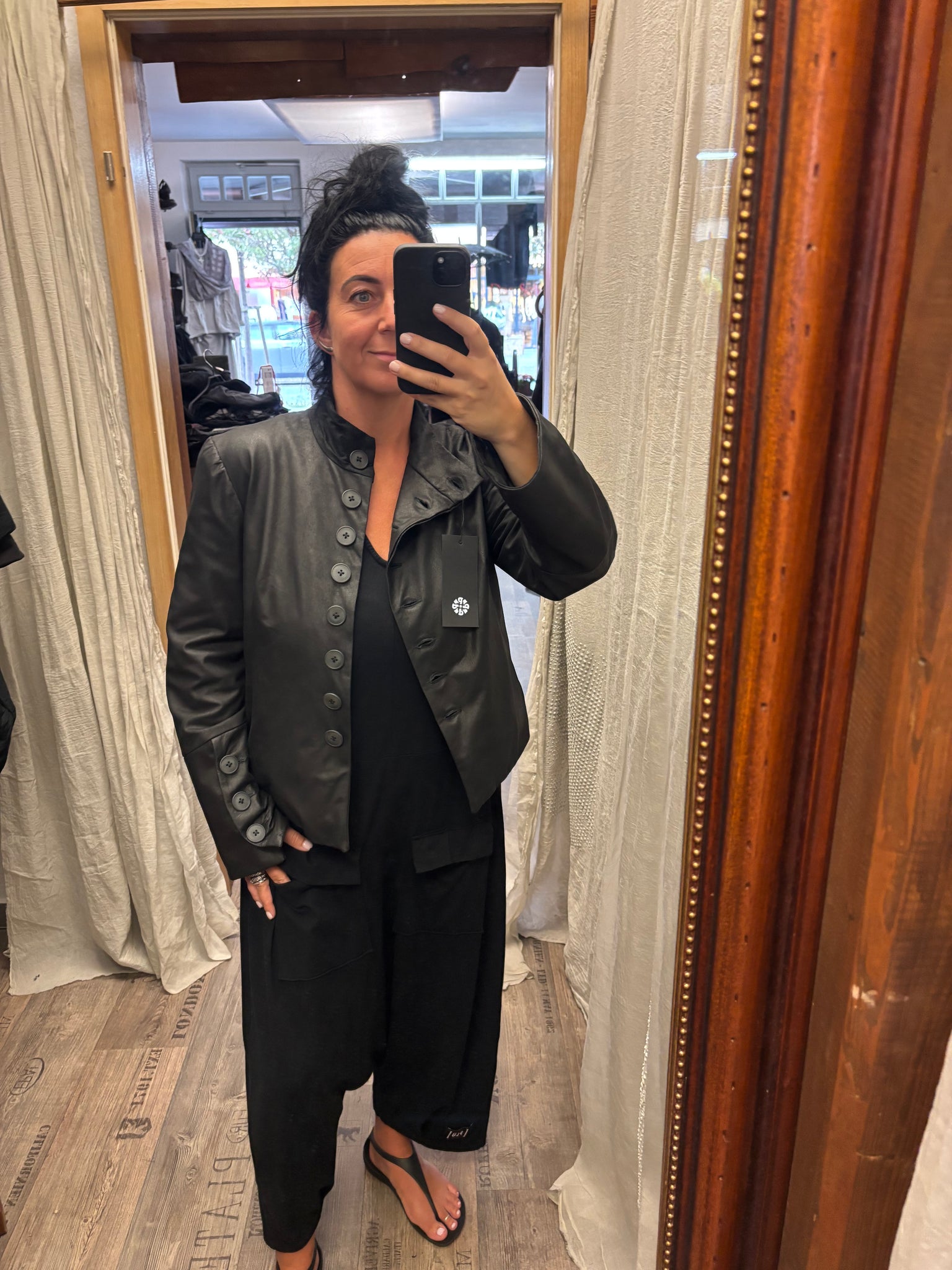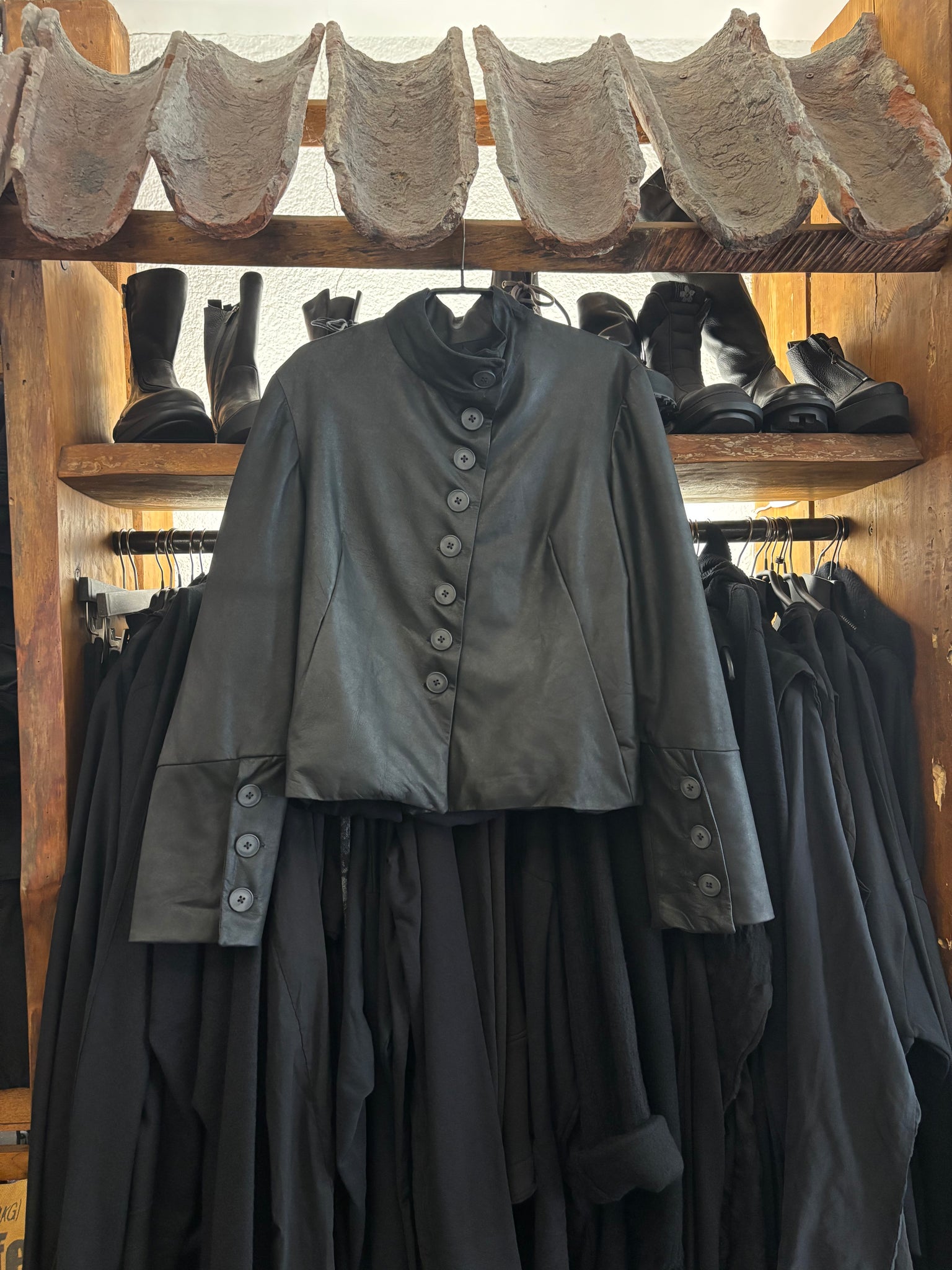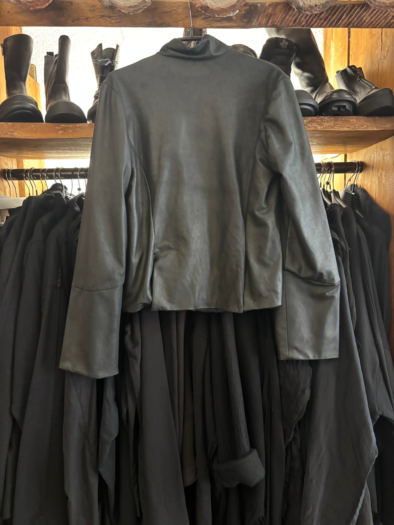 schönes weiches mattes Leder….. kurz und leicht kastig …. Trotzdem tailliert