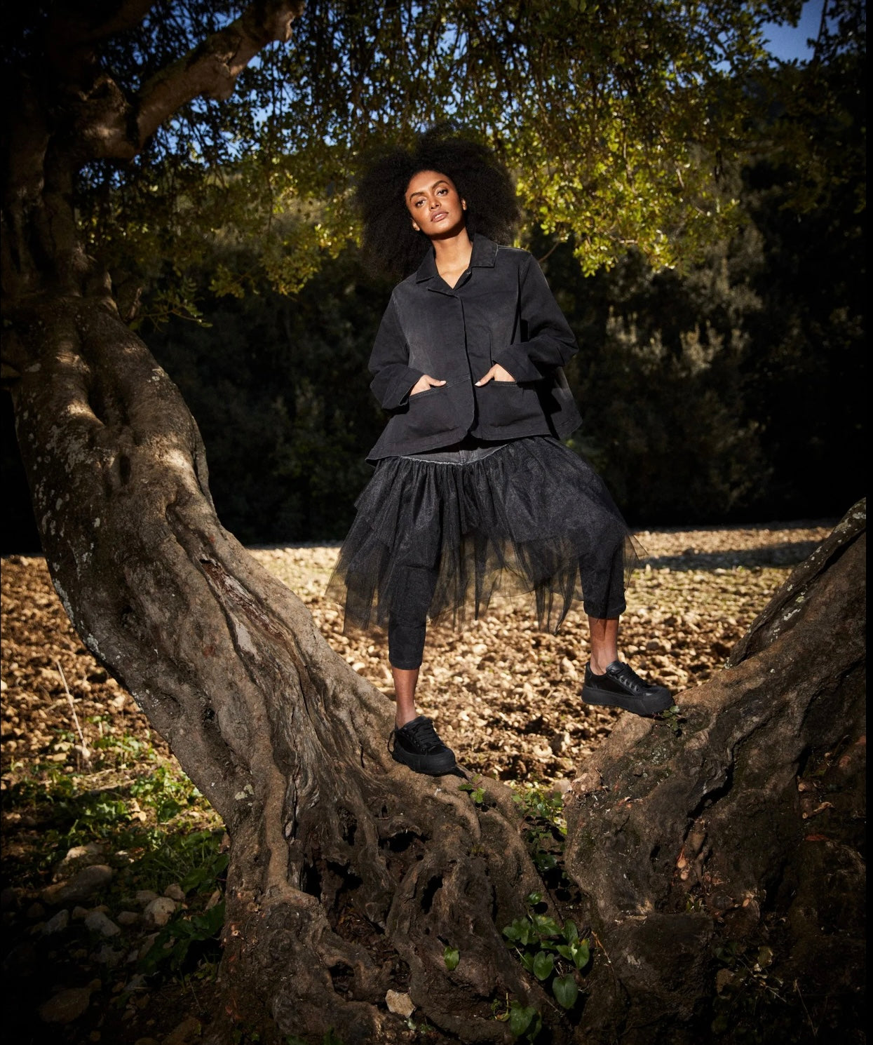 kurze Jeansrock mit Taschen ….. unten Tüll in mehreren Lagen unterschiedlich lang