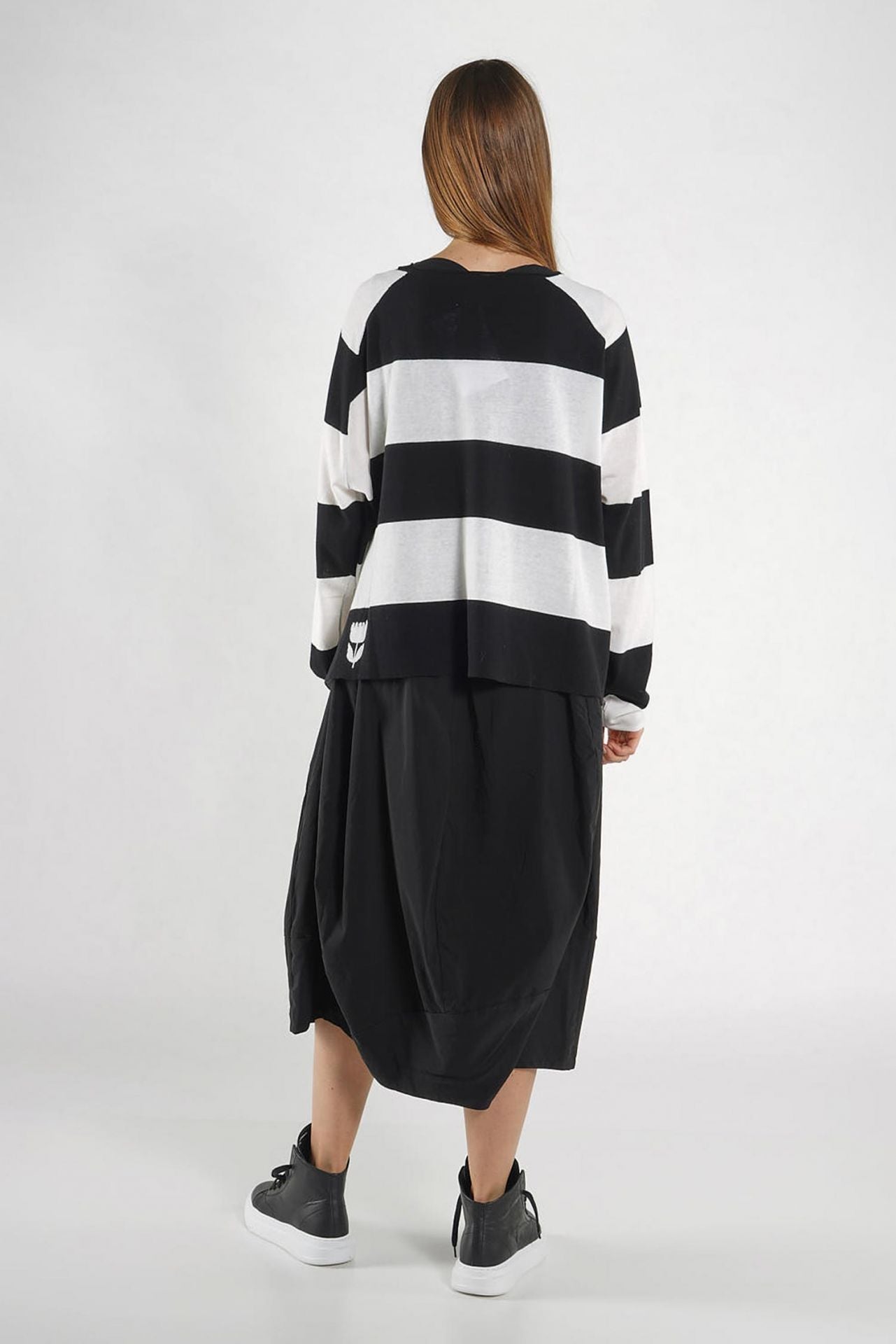 gestreift mit eingestrickter Tulpe am Saum .... runder Halsausschnitt ... Raglanärmel