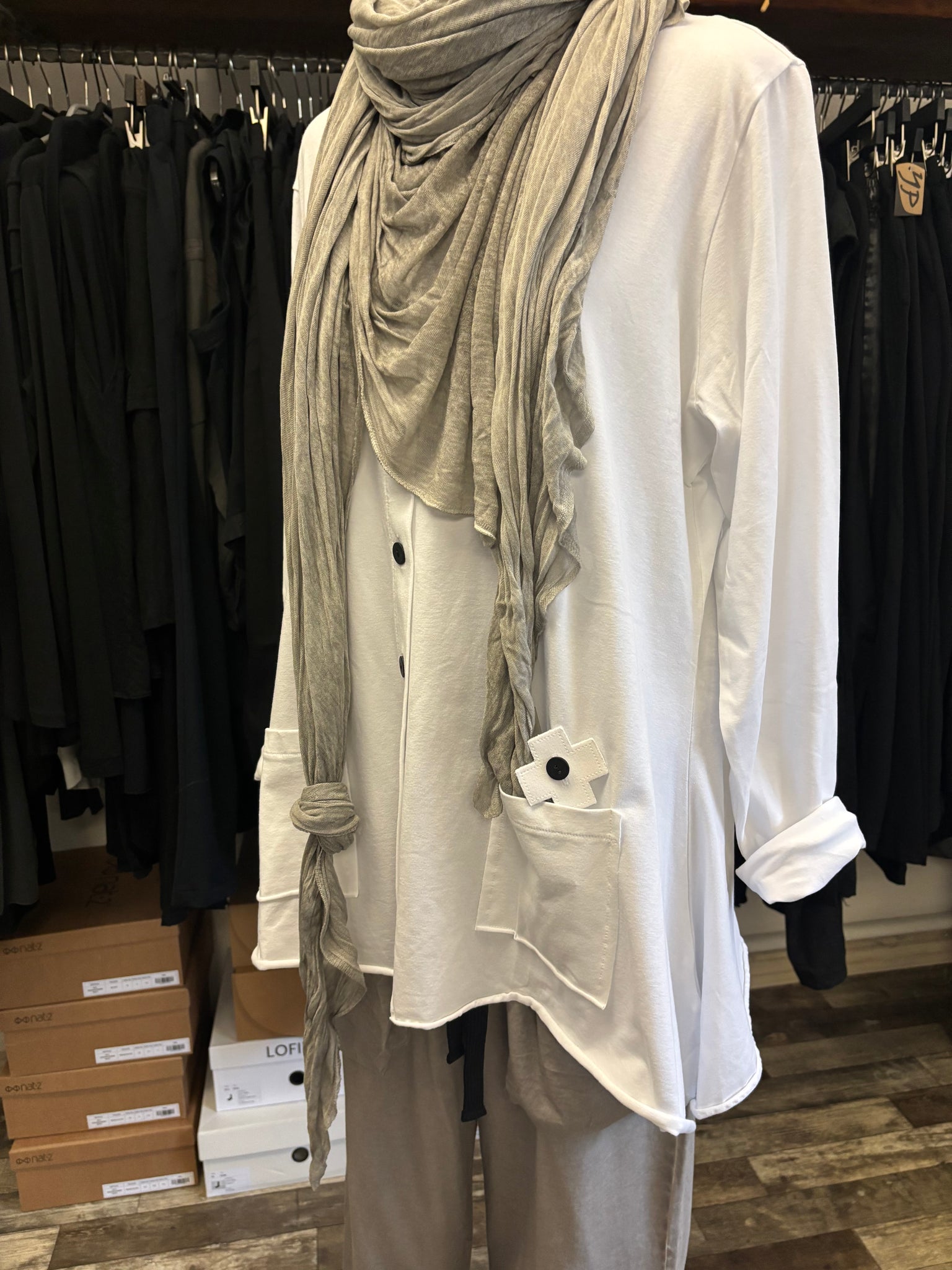 wunderschöner dünner Strickschal aus Viskose ... jeder Schal ist ein Unikat handgefärbt in grau mit schwarzen und weißen Akzenten