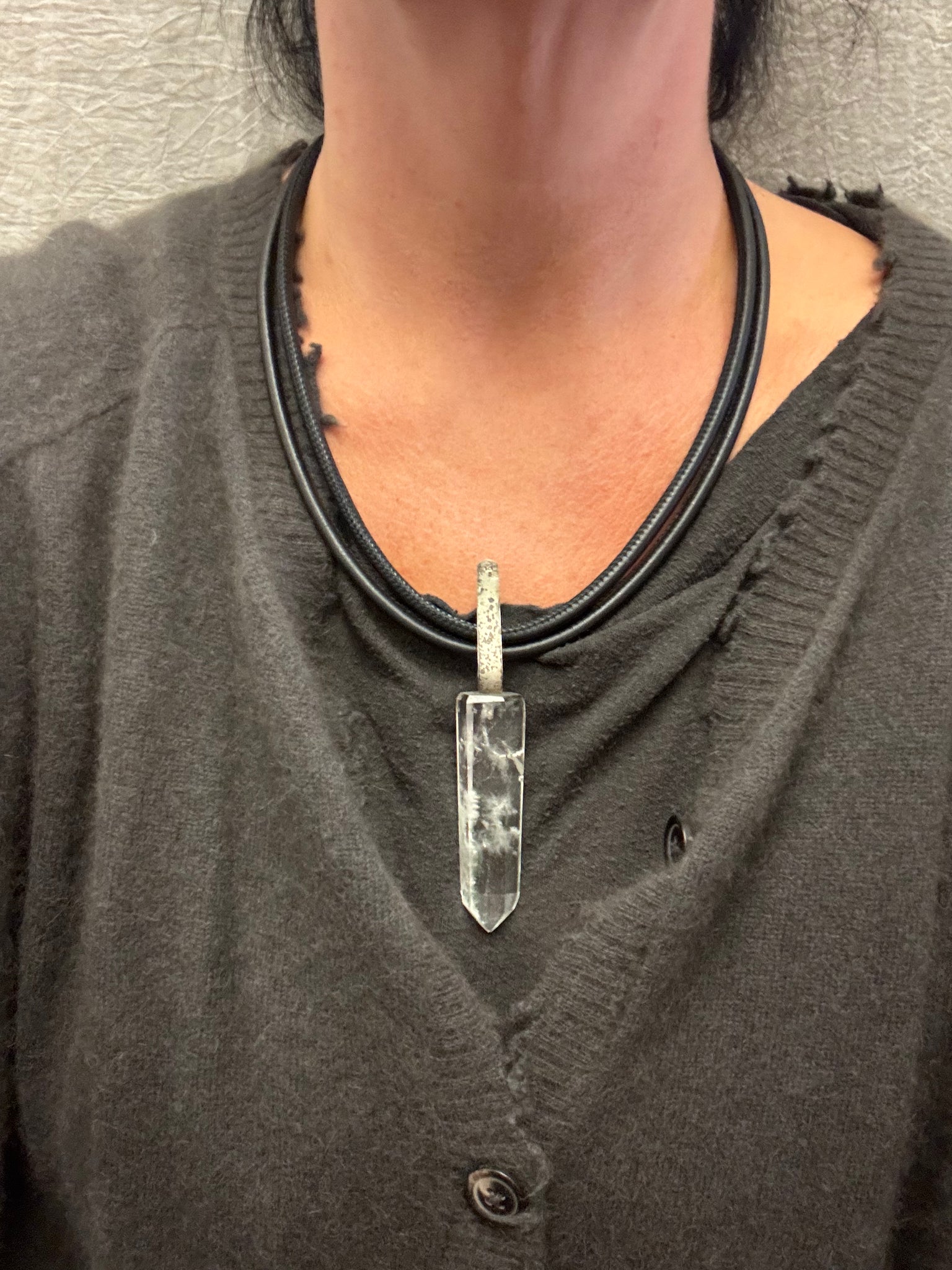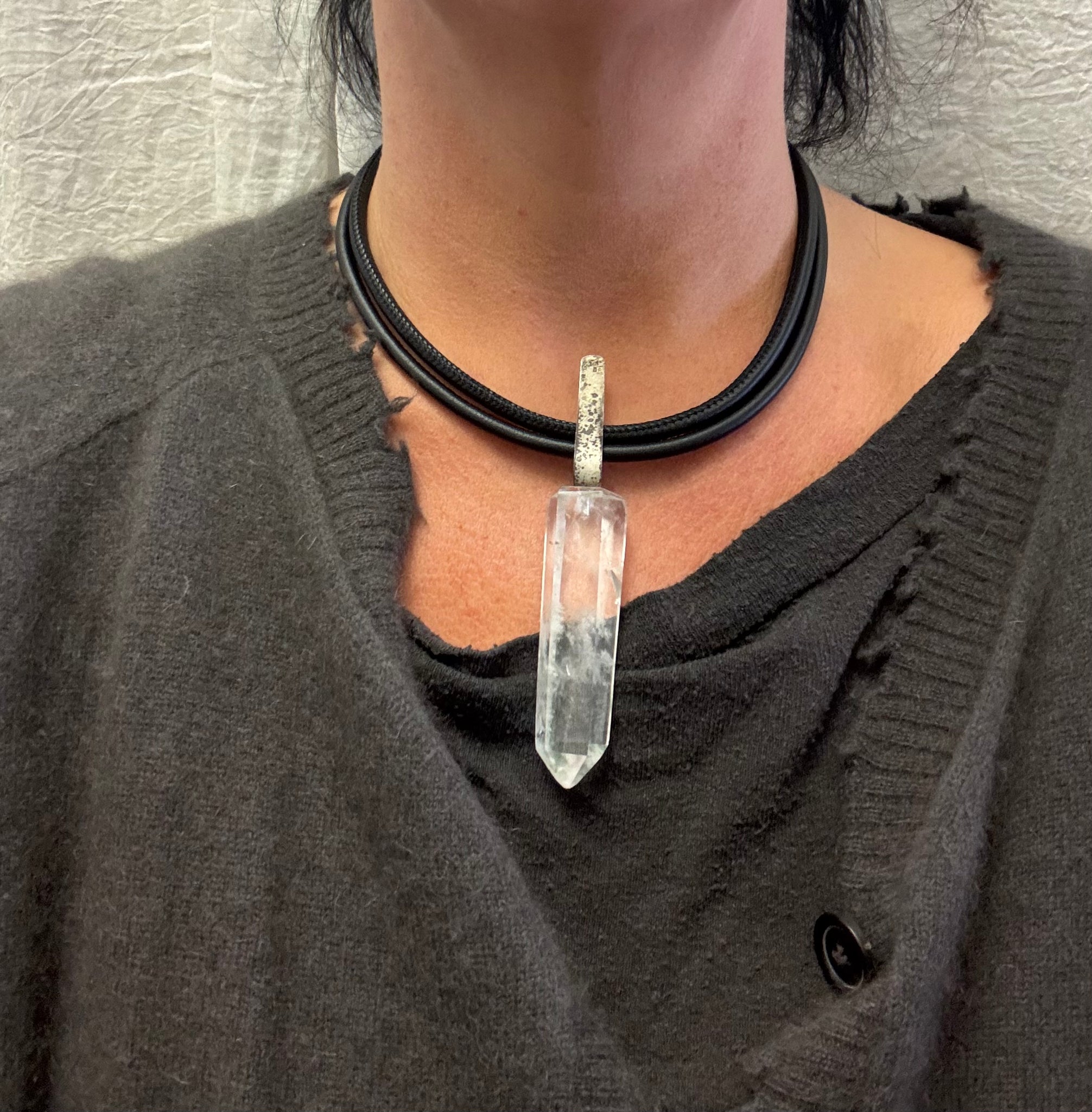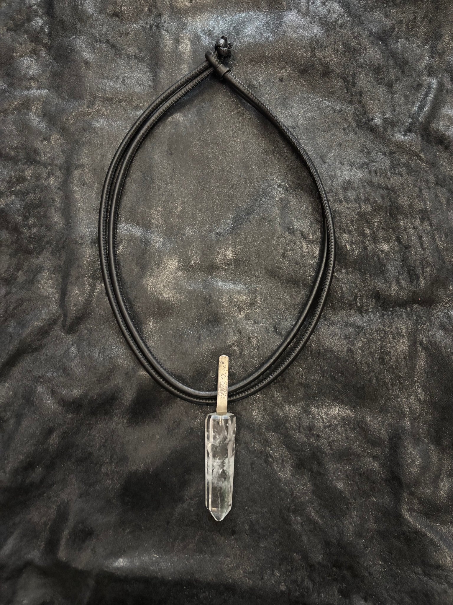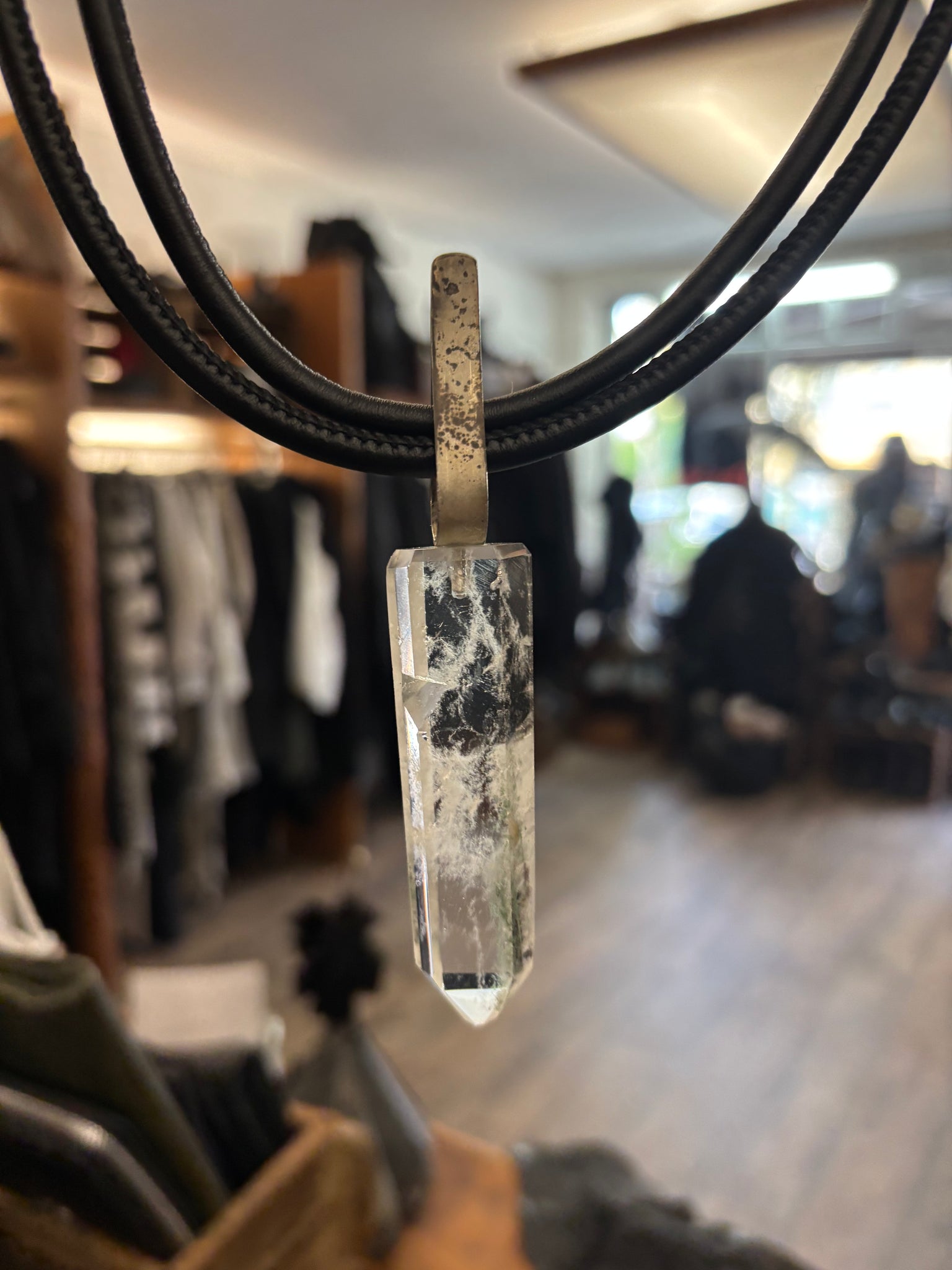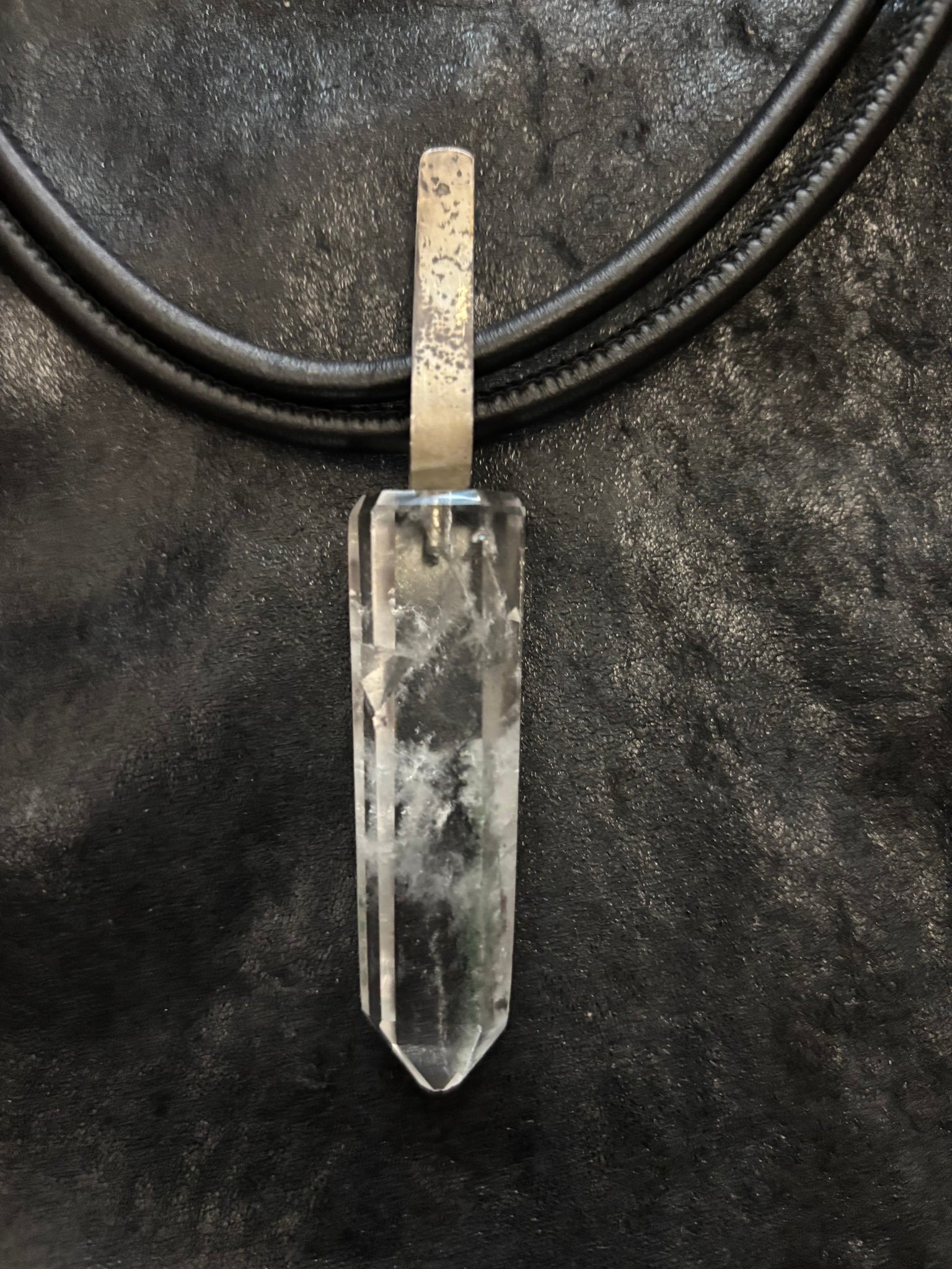 doppelte Lederkette ihr könnt sie super in der Länge variieren…. Anhänger aus geschwärztem 925 Silber mit einem Bergristall