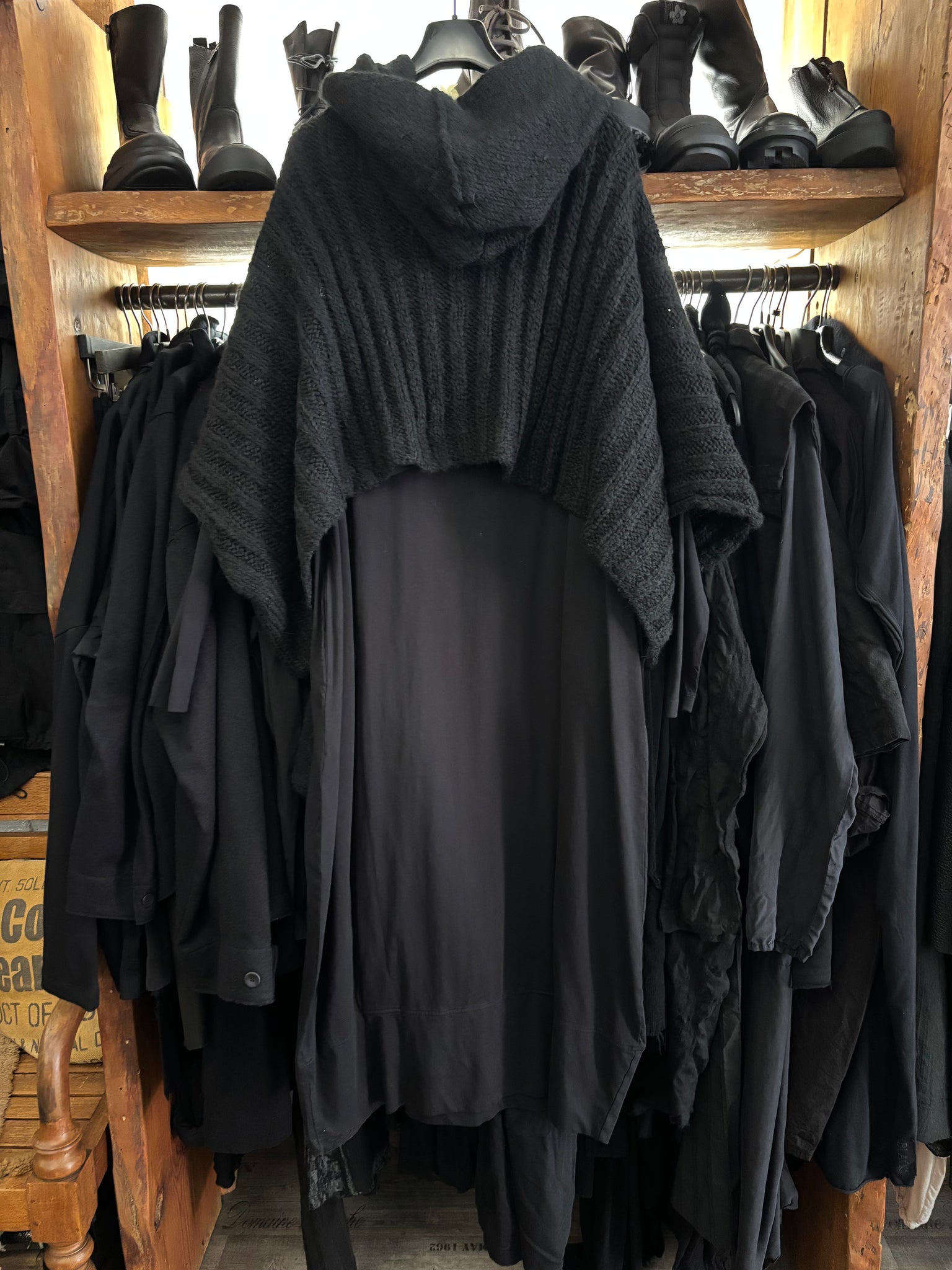 im Stil eines Ponchos aber mit Ärmeln ….. 7/8 Ärmel ….. Kapuze ….. kurz & Kastig